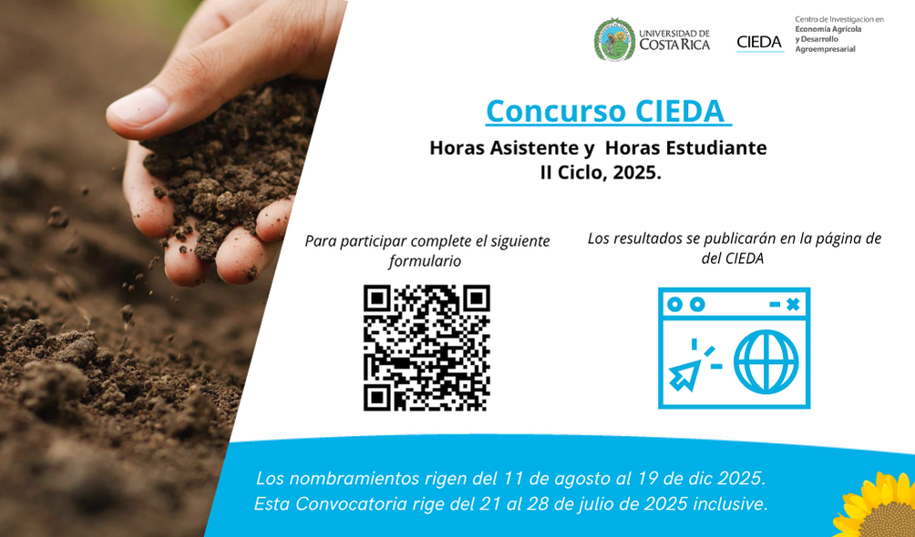 El Mag. Diego Quirós Badilla, junto con las investigadoras Mag. Tatiana Solano Pereira, ME. Johanna Solórzano Thompson, MBA. Olga Calvo Hernández y el profesor MADE Javier Paniagua Molina, investigadores del Centro de Investigaciones en Economía Agrícola y Desarrollo Agroempresarial (CIEDA-UCR), han publicado recientemente el artículo: